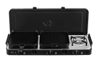 The included GreenGrill ceramic flat grill plate is perfect for all styles of barbecued food. Fry eggs and bacon or pancakes, while on the ceramic ribbed grill plate you can grill fish, burgers and vegetables. Easy to use and clean, simply wash in hot soapy water after use. The two removable pot stands are perfect for using with your own pans or the Cadac Dometic Paella Pan 30 for easy one-pot style cooking. The included small pot stand for the third burner is designed for use with coffee percolators or small pots.